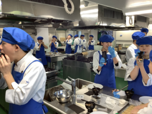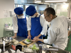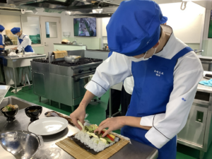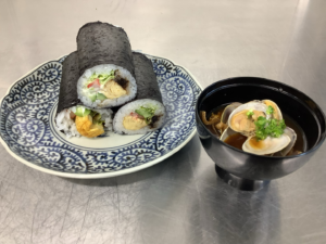 1月14日(水)1年生の調理実習では、恵方巻とあさりの赤出汁を作りました。