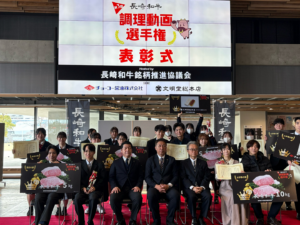 11月25日(日)長崎県庁にて、第3回長崎和牛調理動画選手権の表彰式が行われました。数ある応募