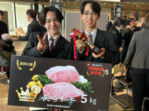 賞状とトロフィーに加え、長崎和牛5キロをいただきました!ありがとうございます。いただいたお肉は、