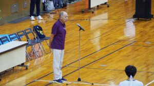 今年度は熱中症予防の観点から、県立総合体育館へと場所を移して実施することにしました。