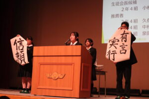 11月19日(水)令和7年度生徒会立会演説会を行いました。