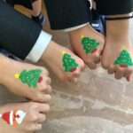 クリスマスツリーやサンタさんを書いてもらい、クリスマス気分の演出に盛り上がりを見せていました。