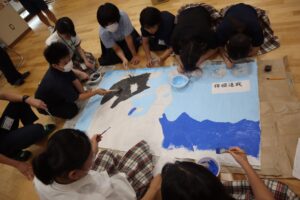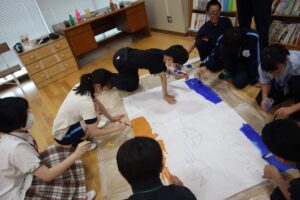 附属中学部2025.09.19 【中学部】体育祭に向けて、旗🚩づくり!! 9月22日(月)は体育祭です。 中学部は、水色組とオレンジ色組に分かれて各競技に取り組みます。 各組で旗づくりに取り組んでいる様子です。 デザインから色塗りまで、自分たちで話し合って作成しました。 体育祭、みんなで楽しみます!! 附属中学部第2回オープンスクールを10月11日(土)に行います。ぜひご参加ください!