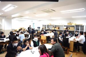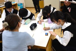 附属中学部2025.11.05 【中学部】企業座談会を開催しました📝 10月29日(水)に長崎県中小企業家同友会様の協力により、高校2年生普通科共育コースの60名と 附属中学部1年生から3年生までの31名の計91名を対象に企業座談会を開催しました。 大事な事はメモを取っています。 企業の方に質問をしています。 中学部の生徒にとっては、地元企業の経営者の方と直接対話することで、働くことへの具体的なイメージを 深めることができました。また、将来の進路を考える貴重な機会となりました。