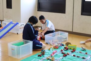 最初は戸惑いながらもだんだんと一緒に遊ぶことができ、生徒にも子どもたちにも笑顔があふれました。