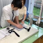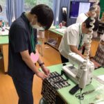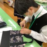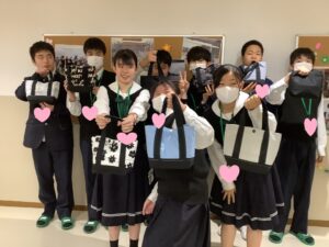 附属中学部2025.11.26 【中学部】ミニトートバッグ作り👜 中学部2年生は、家庭科の時間にミニトートバッグ作りをしました。 自分好みの生地を選んで、チャコペンで印付けを行い、裁断、アイロンがけ、ミシンを使って ミニトートバックが完成!ミシンの使い方も慣れてきて、下糸が無くなると空のボビンに糸を通して 下糸を巻くこともできるようになりました。 自分で作ったミニトートバッグ♡思い入れもあり、日常生活でも活躍しそうです。 次回の授業からは、ペットボトルホルダー作りとなるので授業が待ち遠しいです。