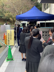 1月27日(火)に、高校棟前駐車場に長崎市選挙管理委員会による移動期日前投票所が設置され、