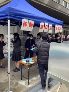 1月27日(火)に、高校棟前駐車場に長崎市選挙管理委員会による移動期日前投票所が設置され、