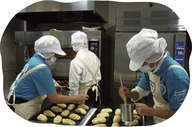 長崎玉成ベーカリー社の運営をしています。パン工房の企画・広報、仕入れ・発注、製造、営業・販売、経理・会計など各分野の訓練を通して職業訓練を行います。
