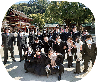 私は小学校高学年で不登校になり悩んでいるときに、紹介された玉成を受験しました。中学部はゆっくりでわかりやすい授業を受けながら、少人数のクラスメイトと仲を深められたので楽しく過ごせました。高校も、中学部からの仲間がいたことで安心して勉強や部活動、生徒会活動に力を入れることができました。国公立大学に入りたいと考えていたので、これから変動していく社会の力になるためにお金の流れや企業の仕組みを学べる経営学部を選びました。先生方が進路や勉強の相談にも親身なってくださったおかげで、今は日々の課題に追われながらも、専門的なことを学べることが楽しいです。一人暮らしやバイトは大変なこともありますが、留年せずに良い成績で卒業し、長崎のためになるような仕事に就くことが目標です。
